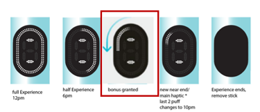 تفعيل FlexPuff وعدد السحبات يعتمد على أنماط الاستخدام الفردية، لذلك قد لا تنطبق السحبات الإضافية على جميع المستهلكين البالغين و/أو التجارب. تتوقف FlexPuff عن العمل عند تفعيل وضع الإيقاف المؤقت. هذا يعني أن بعض المستخدمين لن يحصلوا على تجربة ممتدة.