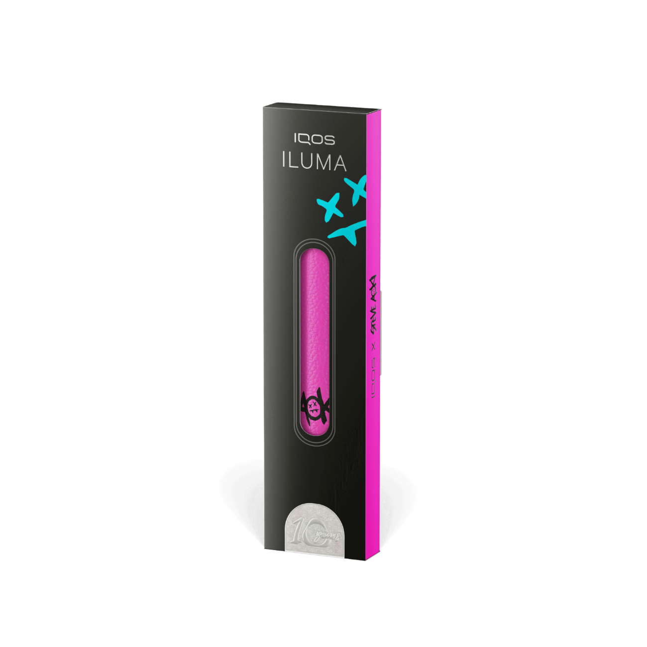 يتوفو غطاء باب IQOS ILUMA x Steve Aoki Edition ذات الإصدار المحدود بلونين: الفيروزي والأسود الوردي. اختر لونك المفضل وقم بتحويل شاحن الجيب IQOS ILUMA الخاص بك بأسلوبك الفريد.
