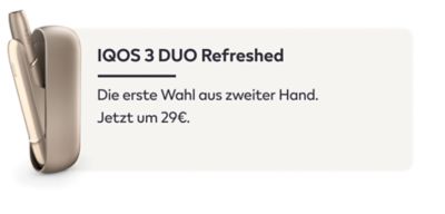 Das IQOS 3 DUO Refreshed Kit um 39 Euro, oder das IQOS ORIGINALS DUO um 59 Euro.