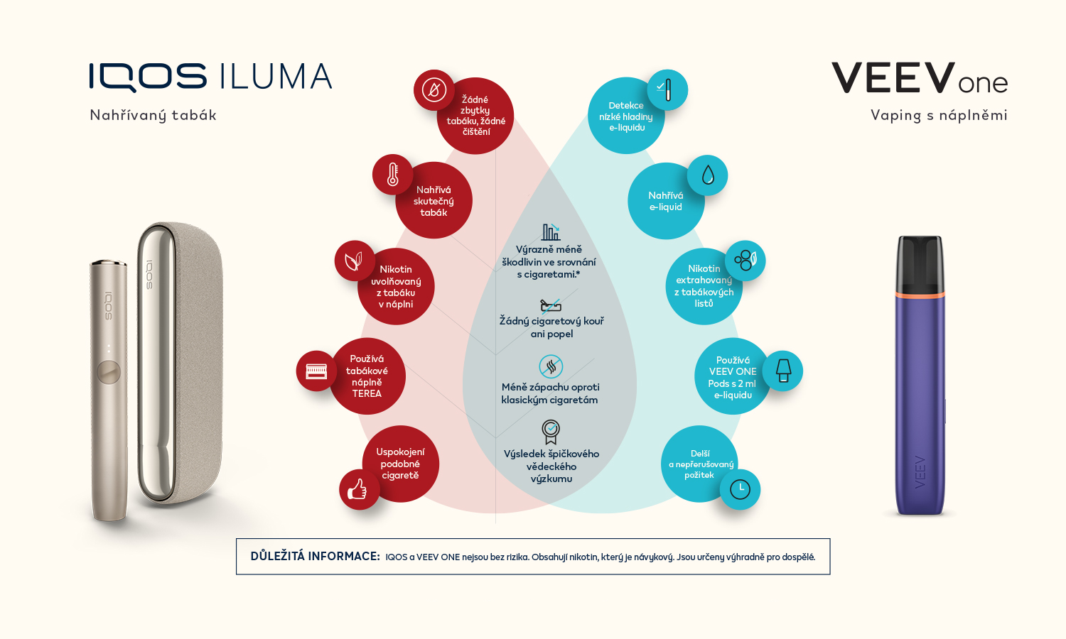 Přečti si o rozdílech mezi tabákovými náplněmi pro zařízení IQOS a e-liquidy pro e-cigarety VEEV ONE a VEEV NOW. Zjistíš, které zařízení je pro Tebe vhodnější.