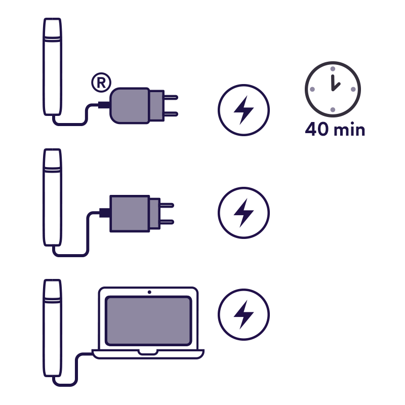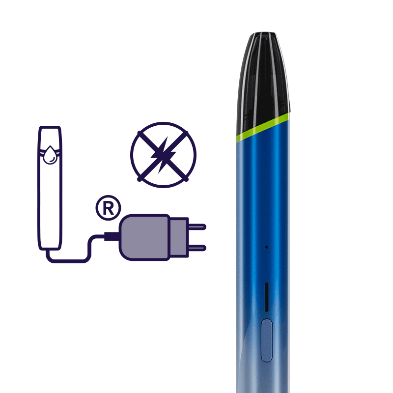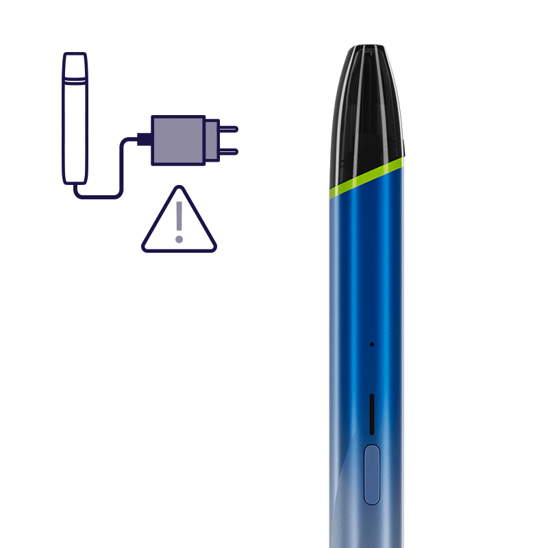- Pokud zařízení detekuje suché potáhnutí 3x za sebou v důsledku nedostatku e-liquidu nebo používání zařízení vzhůru nohama, kontrolky se ztlumí a automaticky se vypne.