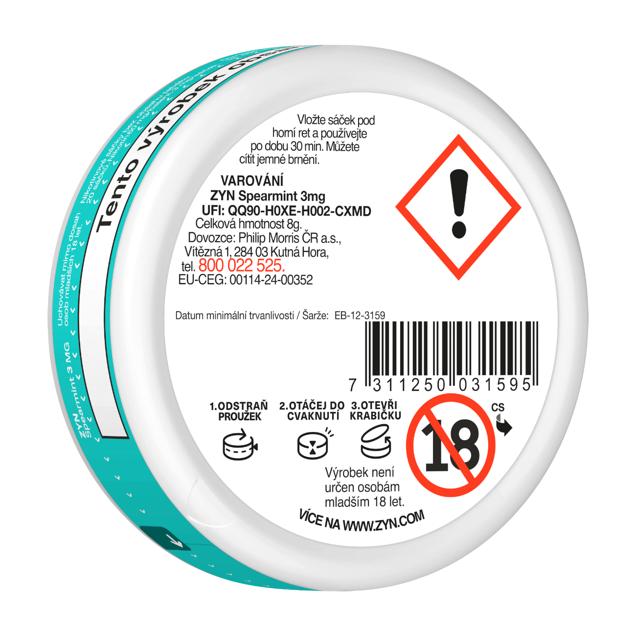 Jemně nasládlá chuť máty (spearmint). ZYN ve velikosti mini je vhodný pro dospělé uživatele nikotinových sáčků.