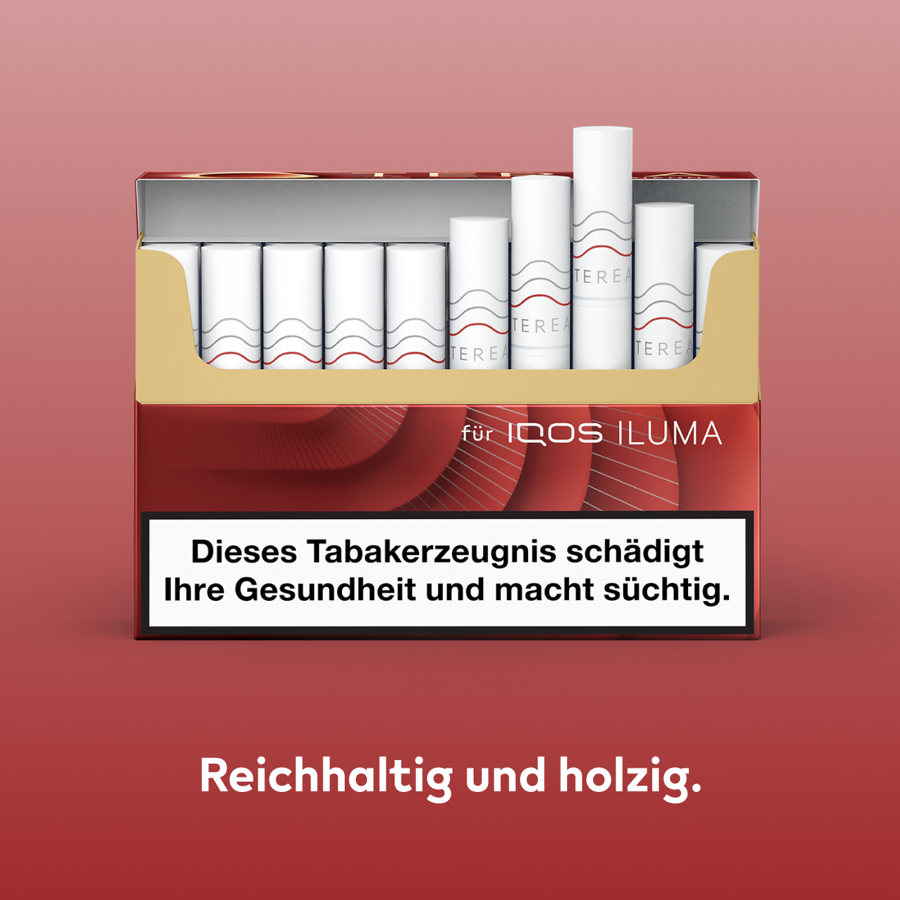 Eine Packung IQOS ILUMA TEREA enthält 20 Tabaksticks. Ein IQOS ILUMA TEREA Karton enthält 10 Einzelpackungen und enthält 200 Tabaksticks.