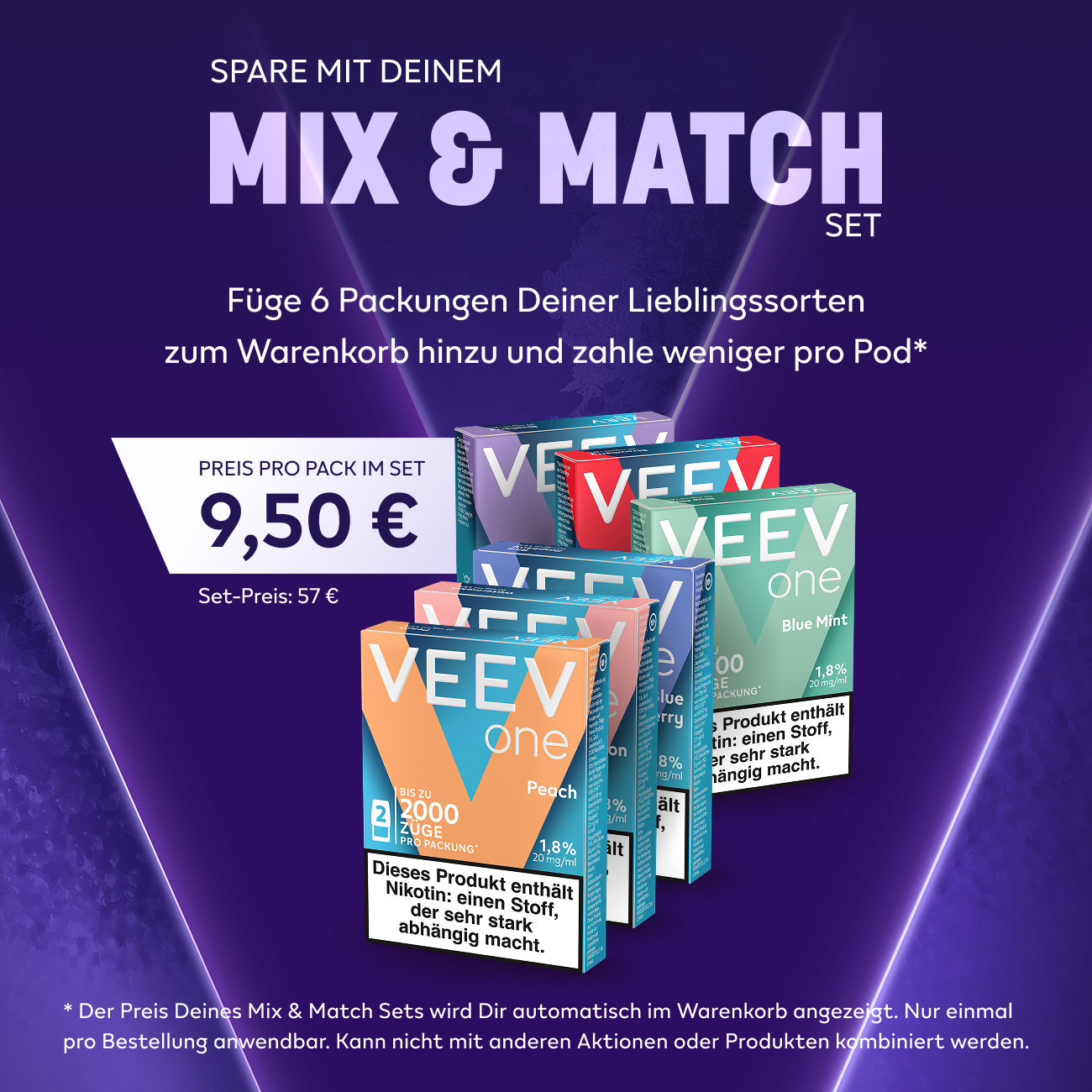Zum Kennenlernen: 2 Packs (4 Pods) Deiner Wahl für 9,90€ + gratis Lieferung. Lege Dir hierfür 2 Packs Deiner Wahl in den Warenkorb. Einmal pro Kunde einlösbar.