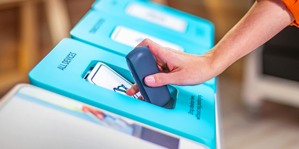 You don't have to put the device in a collection bag; you can simply drop it off in the collection box and we will hand them all over for recycling. Made from 75% recycled materials, it makes sense to return them.