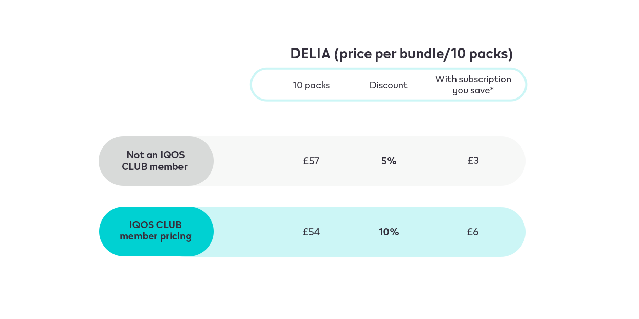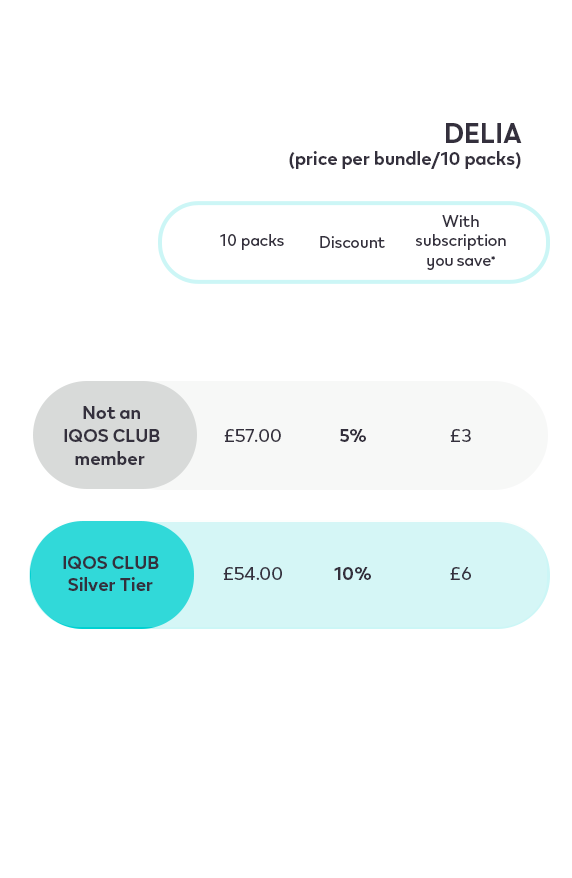 1. Any Subscription refers to TEREA, DELIA or LEVIA bundles. DELIA and TEREA Menthol, Aromatic and Capsulated flavours are not available to purchase in Northern Ireland. Offer valid for one redemption per customer at iqos.com until 30 June 2026, or while stocks last. Do not ingest or dissamble LEVIATM sticks. This product contains a sharp metal part which can cause serious injury if swallowed. Keep out of reach of children. More information on www.iqos.com