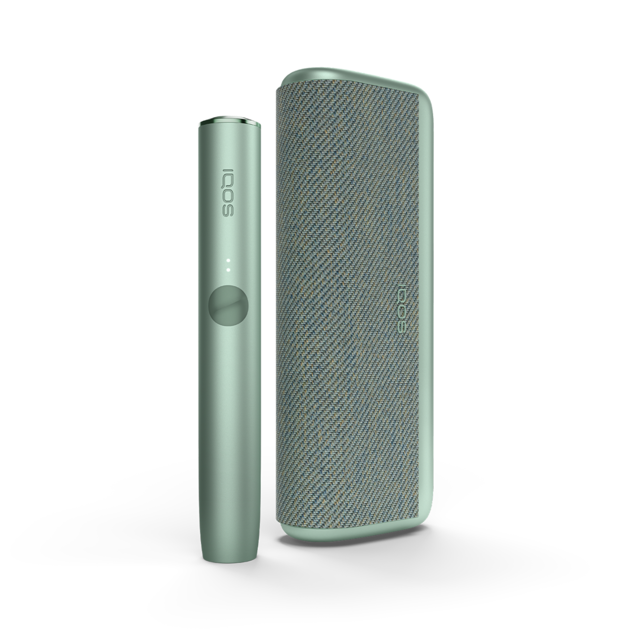 A Jade Green IQOS ILUMA PRIME Holder and Pocket Charger.