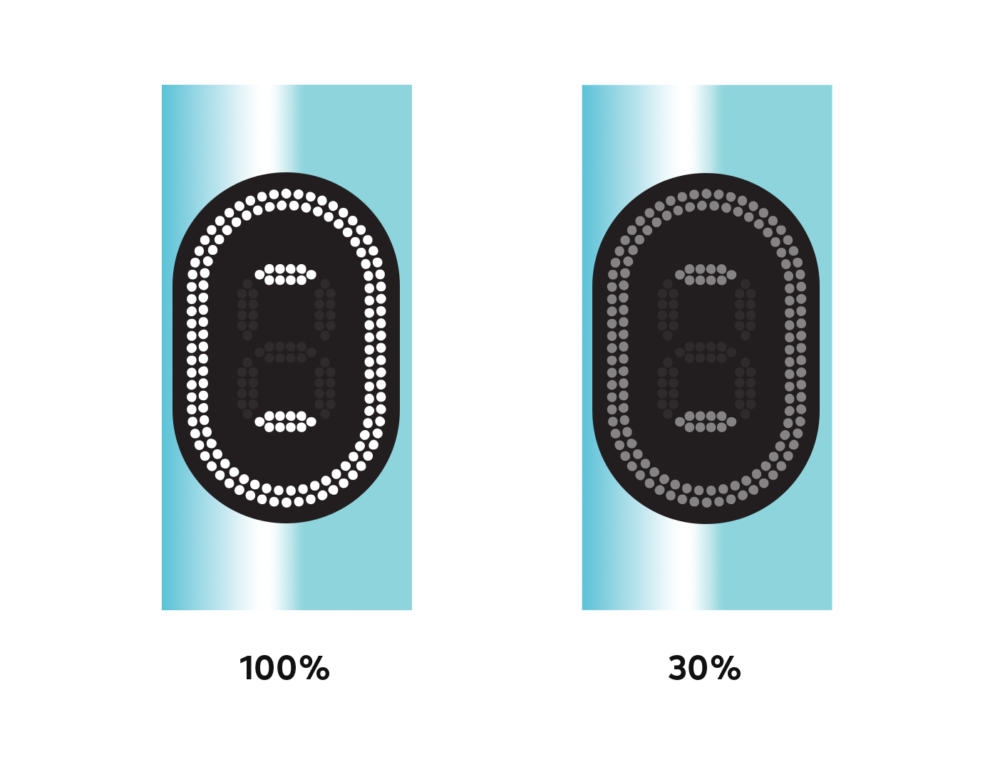 Your LED intensity level changes in between 100% (High) & 30% (Low).