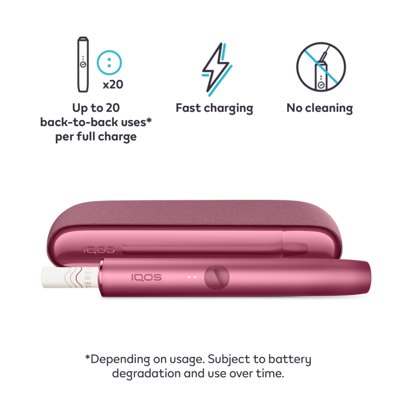 The IQOS ILUMA holder is designed to provide 2 consecutive experiences and up to 20 uses from a fully charged Pocket Charger, each lasting up to 6 minutes or 14 puffs (whichever comes first).