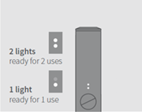 Short Press Pocket Charger Button. Pocket Charger light will turn on: 2 lights mean ready for 2 uses and 1 light means ready for 1 use. The Pocket Charger Status Lights will turn on to indicate the battery level.
