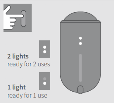 Tilt the holder towards you or short press the button. The lights will indicate the battery level. 2 lights mean ready for 2 uses, 1 light means ready for 1 use.