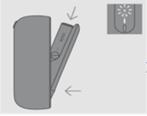 CHARGE HOLDER: Insert Holder into the Pocket Charger, to charge and close the wrap (for an IQOS ILUMA PRIME). Holder Status Light will show Holder battery level. |