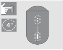 TURN ON: Press and hold button for 4 seconds, then release: Status lights will turn on slowly. |