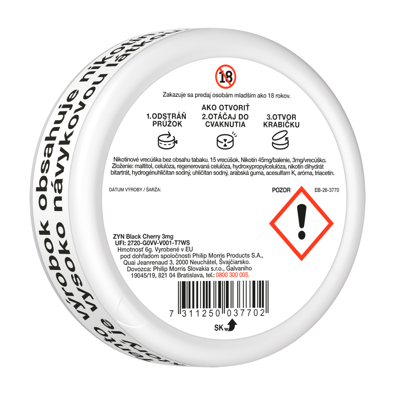 Tento výrobok obsahuje nikotín, ktorý je vysoko návykovou látkou.
