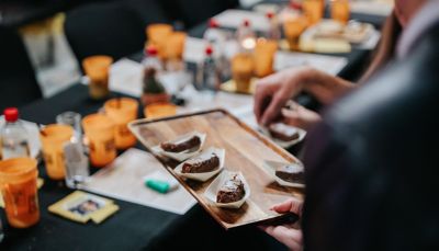 Complimentary cocktails, savory bites, sweet treats, and a live vocal performance set the tone.